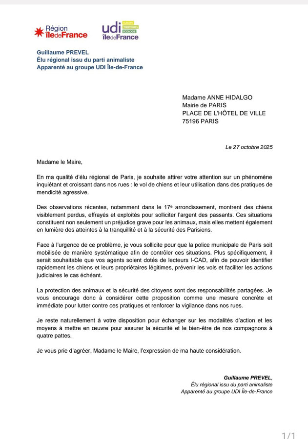 Paris doit être exemplaire. Les chiens et les chats ne sont pas des outils de mendicité : ce sont des êtres sensibles, protégés par la loi, et pour beaucoup de citoyens, de véritables membres de la famille.