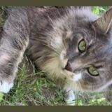 Mowgly a donc 4 ans et demi, c’est un chat Européen mais typé Chats des forêts Norvégiennes, il possède des poils mi-long, il est de couleur grise avec quelques taches blanches. Il a de magnifique yeux verts dont un avec des tâches de dépigmentation marrons.