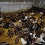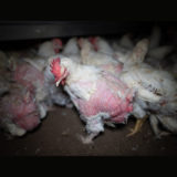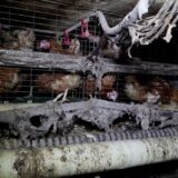 Dans cet élevage, près de 200 000 poules vivent les unes sur les autres dans des cages exiguës, sans jamais voir la lumière du jour. Leurs pattes reposent sur un sol grillagé. Certaines d’entre elles n’ont plus aucune plume sur le corps, d’autres sont à l’agonie et privées de soin ; d’autres encore sont mortes et laissées au milieu des déchets, ou dans les cages au milieu de leurs congénères, parfois jusqu’à un niveau de décomposition avancée. Une clôture électrique est installée dans les cages pour empêcher les poules de manger les œufs qui ont roulé à l’avant sur le convoyeur.