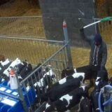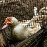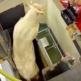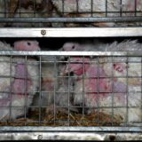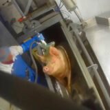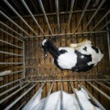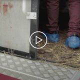 Les images montrent aussi les sévices que subissent les poules en fin de cycle, au moment de leur chargement pour l’abattoir. Dans le vacarme, les cris, mais aussi les rires, des coups violents sont portés aux animaux : coups de bâton et de pied, percussions contre les cages. Les oiseaux paniqués sont ramassés brutalement et tassés comme des marchandises dans des caisses de transport inadaptées. C’est la première fois que le chargement des poules pondeuses en cage est montré en France.