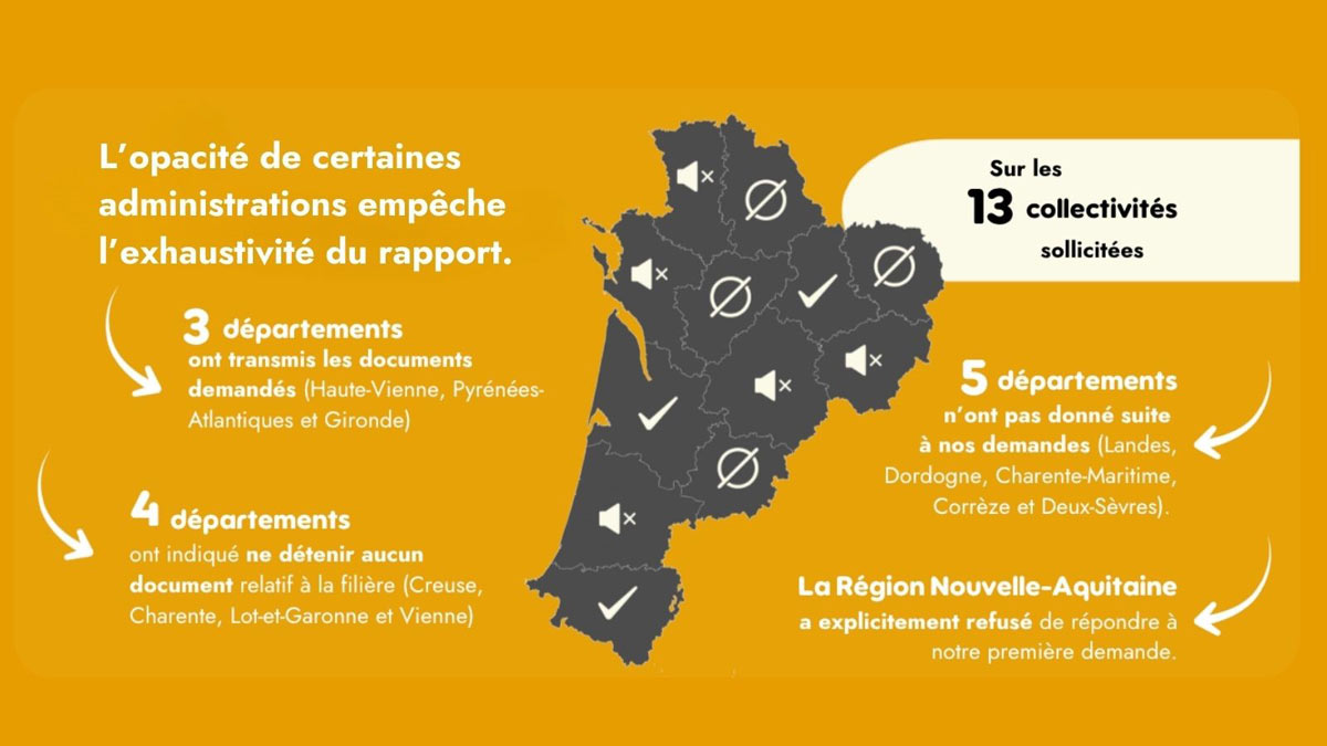 La recherche de l’ObSAF repose sur l’étude des documents administratifs relatifs aux aides octroyées entre 2022 et 2025 par les départements et la Région Nouvelle-Aquitaine. L’accès à ces documents est un droit en France. Pourtant, face à l’opacité de certaines administrations, l’ObSAF a été contraint de saisir la Commission d’Accès aux Documents Administratifs (CADA) à plusieurs reprises.