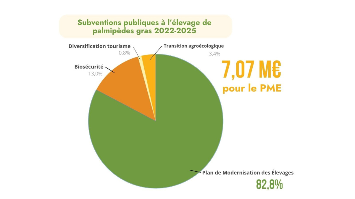 Enfin, les aides à la communication, à l’innovation et à la coopération (plus de 315 000 € en 2024 pour la seule promotion de l’IGP Sud-Ouest) jouent un rôle clé dans la stabilisation narrative de la filière, en entretenant une image patrimoniale déconnectée des réalités zootechniques (claustration, confinement, standardisation industrielle).