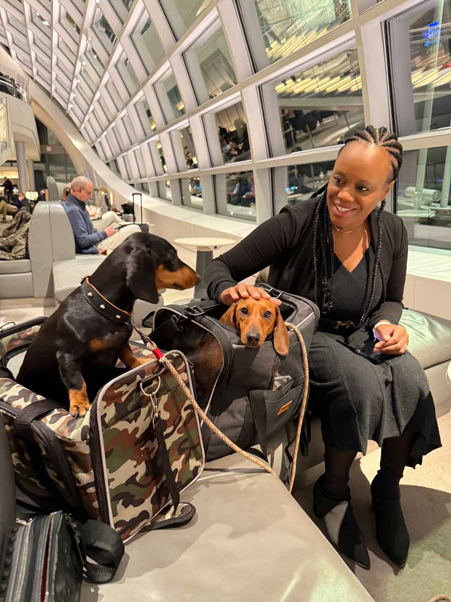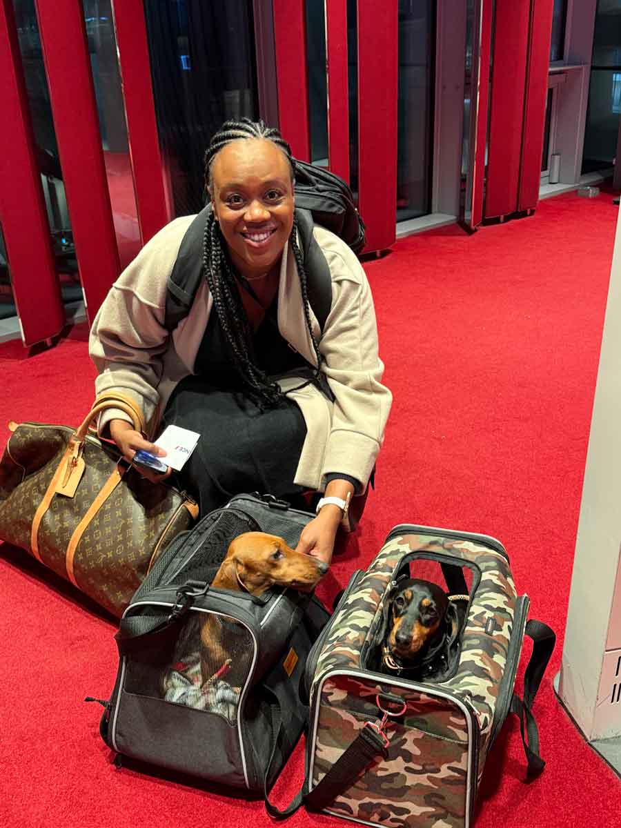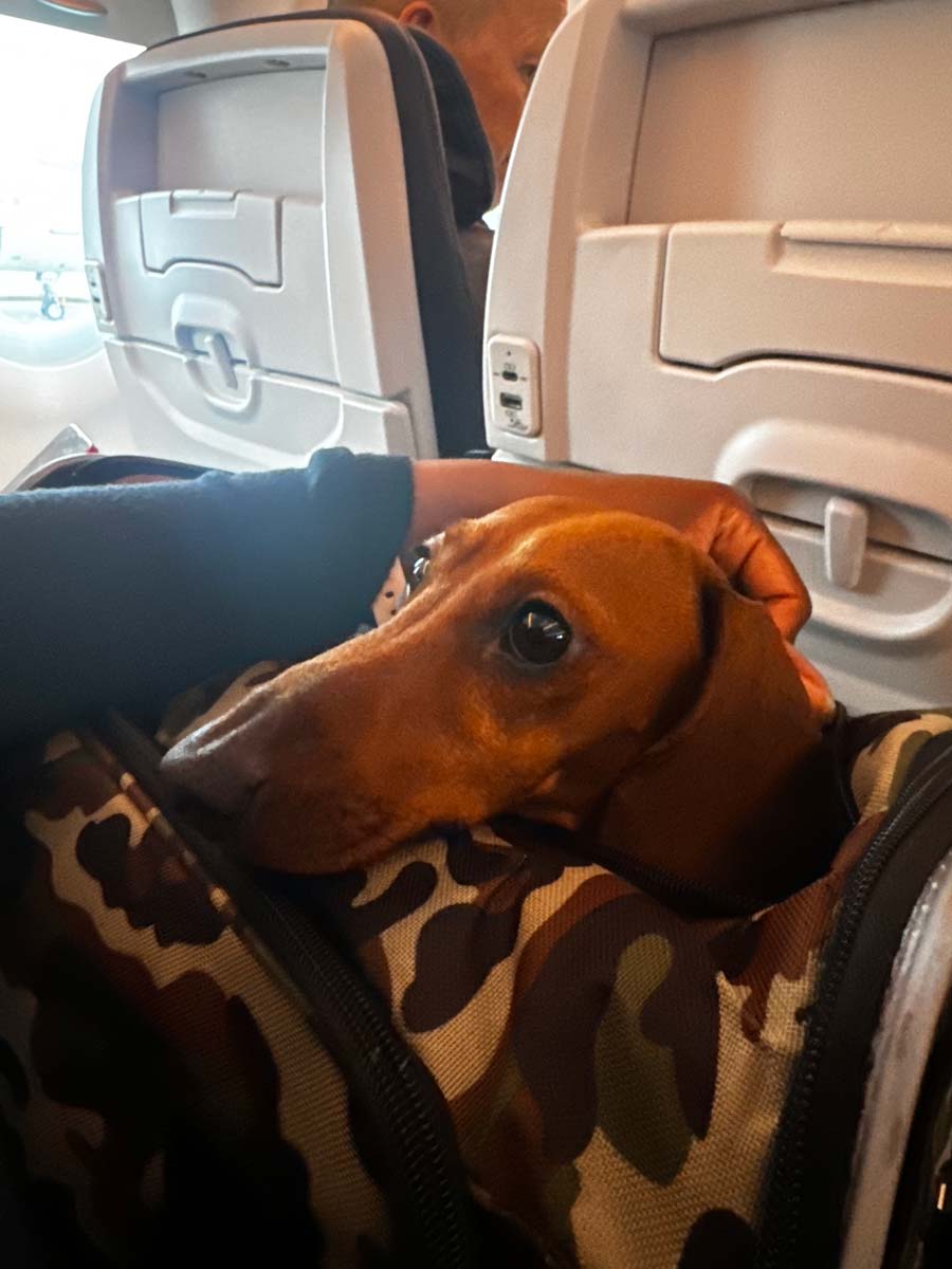 Je me suis retrouvée dans l’avion, un chien sur les genoux, des documents en main, à jongler entre les règles, les dimensions du sac, les validations de la compagnie.