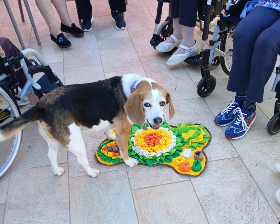 Parallèlement à l’écriture, mon engagement s’est prolongé sur le terrain. J’ai entamé une formation en médiation animale et obtenu l’ACACED « chiens », car c’est essentiellement avec le chien que j’interviens aujourd’hui. J’ai déjà mené des séances en EHPAD, où la présence animale ouvre de merveilleux espaces de parole, de mémoire et d’apaisement. Là encore, l’animal — mon chien, un beagle nommé Pogo, adopté dans un refuge à l’âge de cinq ans — n’est ni un outil ni un prétexte. Il est un partenaire sensible, attentif, présent. Un être sensible qui communique à sa manière…