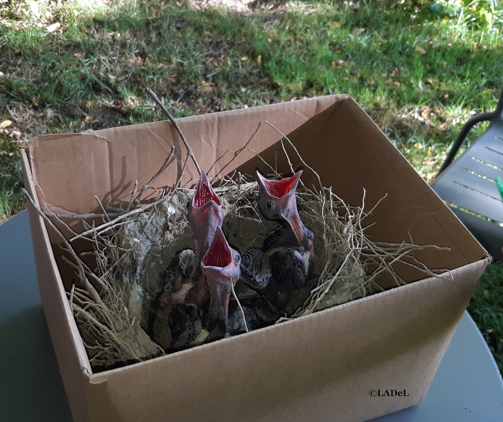 Dans ce cas, il n’est pas en capacité de se cramponner aux branches. Or le nid est rarement accessible. Peu importe : on lui fabriquera un « faux nid » grâce à une cagette ou un carton empli d’herbes sèches (surtout pas un contenant étanche, car il pourrait se noyer en cas de pluie), que l’on disposera bien calé sur une branche haute, abrité du soleil. Attention à ne jamais laisser d’aliment dans ce nid, ce qui attirerait guêpes ou fourmis.